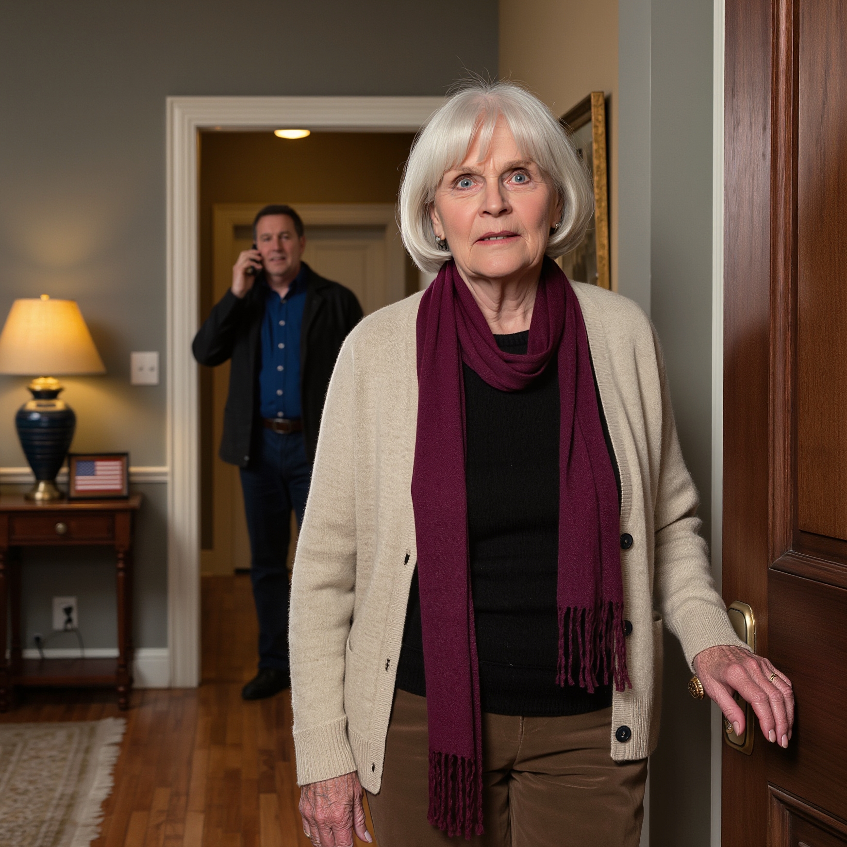 I gave a faint smile. “Officer, yes, this is my son—but I do not want to talk to him. They drove here from Chicago, tried to break down my door, screamed at me, cursed at me, and threatened me. All of my neighbors here can attest to that.”