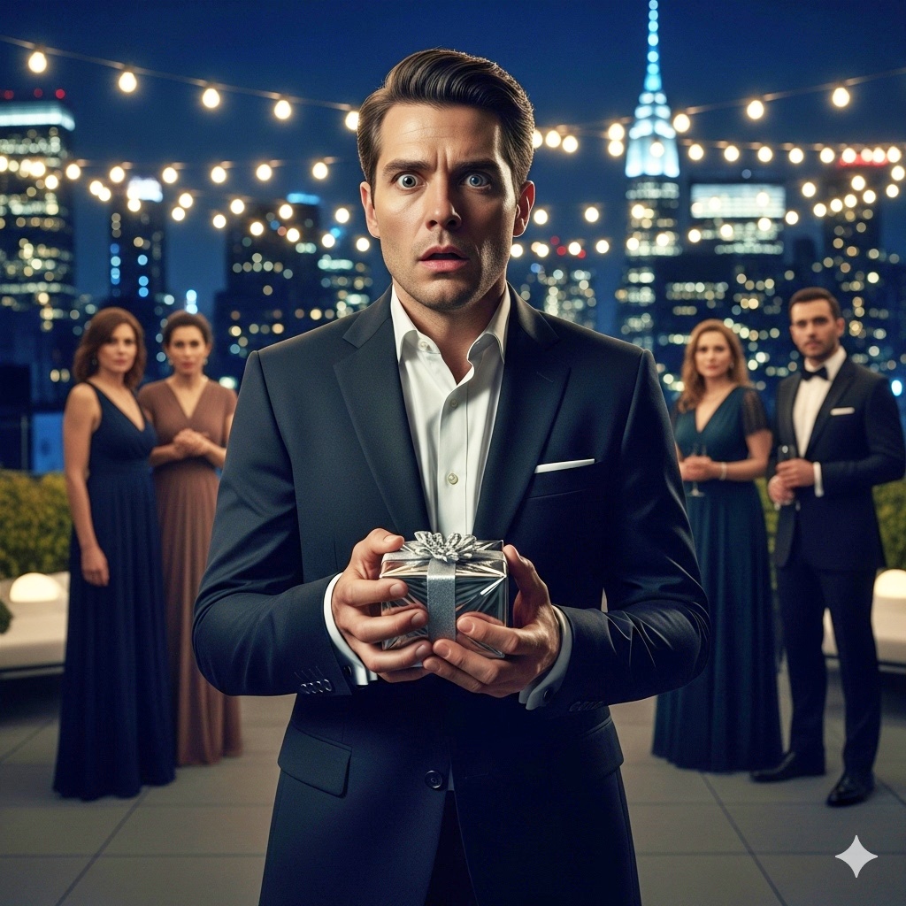 The champagne glass had not yet touched my lips when the rooftop in Chelsea, New York, fell into a silence so sharp it felt like the city itself was holding its breath. The lights strung across the night sky were still sparkling, the DJ’s playlist still pulsed through the speakers, but every single gaze—sixty pairs of eyes—shifted and locked on me.