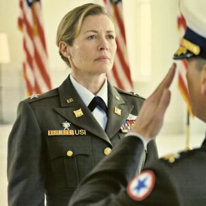 The flag was folded once, then again, then into that tight, perfect triangle you only see at American police funerals. The stars faced…